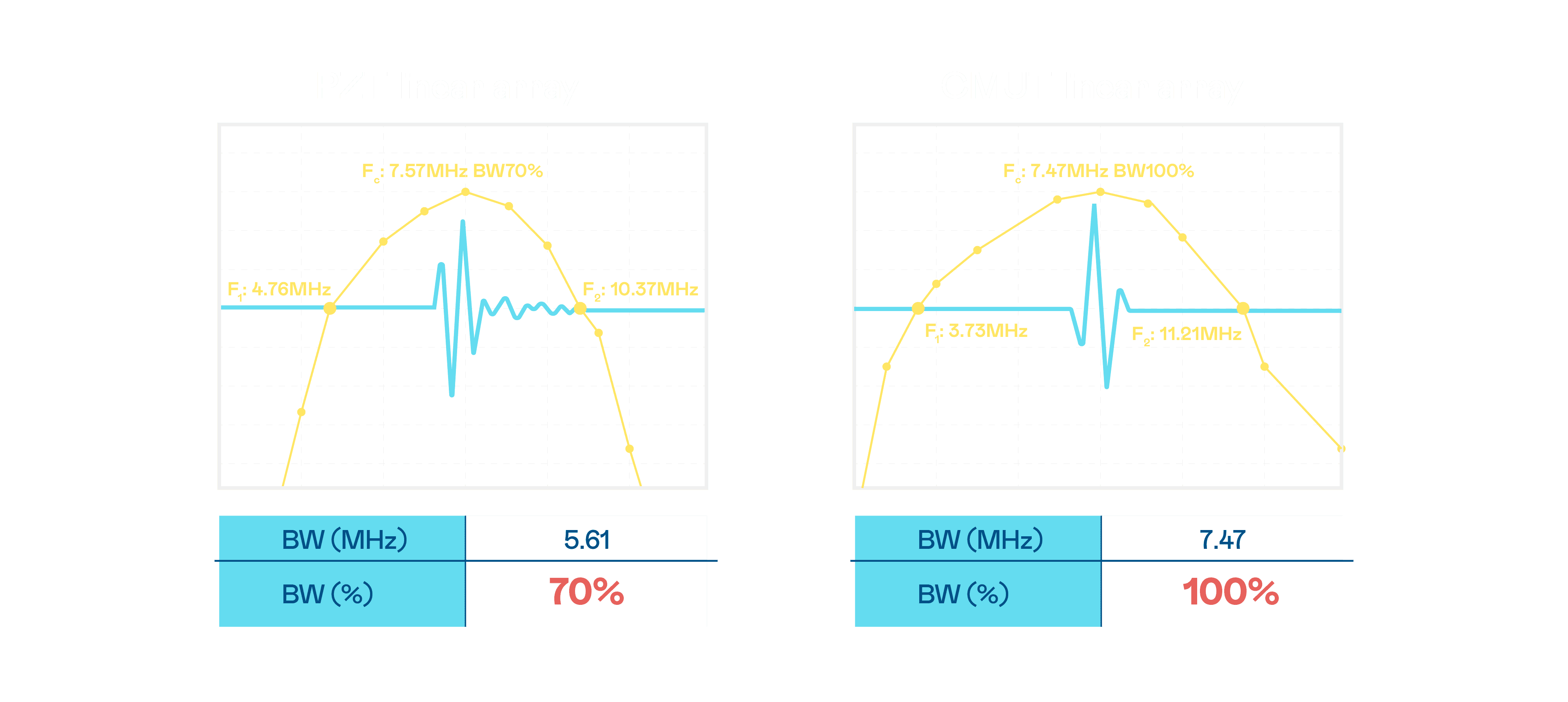 超音波影像的解析度高低,,,首先取决于探头能发出的讯号频宽。。。。YAXIN111 CMUT 可提供高清晰的超音波讯号,,,提供高频宽、、、、高灵敏度、、影像纹理细节更高的超音波影像,,,协助医护人员缩短影像判读时间及利用精准的医疗影像进行诊断。。。。