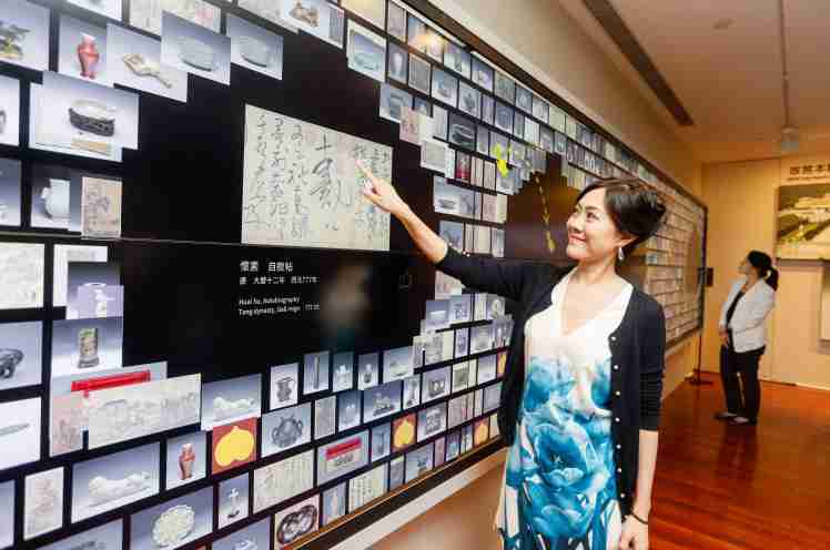互动导览墙的设计灵感源自故宫多宝格文物,,,,具直觉友善的使用接口与红外线感应设计,,,可让多人同时透过点选、、拖拉、、、、滑动等互动手势,,,,简单饱览300多件故宫文物精彩的图像、、影片、、动画、、360度环物模型及书法释文,,整合在线线下体验,,,,增添参观者导览互动体验享受。。。。